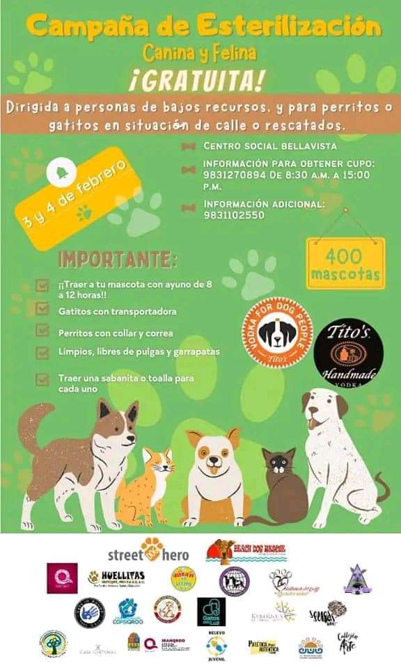 Este 3 y 4 de febrero, habrá una campaña de esterilización gratuita para tu perrito o tu gatito.