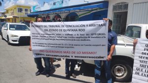 Un grupo de maestros del Sindicato Independiente de Trabajadores de la Educación de Quintana Roo (Siteqroo), se manifestaron en la Junta Local de Conciliación y Arbitraje de Chetumal para exigir que la actual dirigente Larissa Francelia Canul emita la convocatoria para renovar la secretaria general del SITEQROO.
