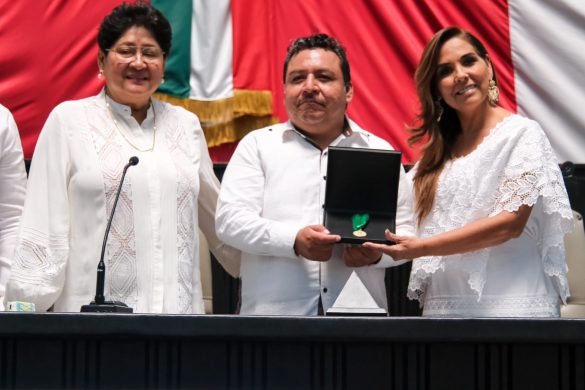 En sesión solemne de la XVII Legislatura del Congreso del Estado, la gobernadora Mara Lezama Espinosa señaló que “Mis felicitaciones desde el fondo de mi corazón por esta merecida distinción y reconocimiento a tu trabajo de todos los días”.