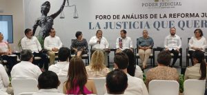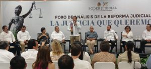 Un grupo de trabajadores del Poder Judicial de la Federación se manifestaron durante el Foro de Análisis de la Reforma Judicial que se realizó en la ciudad de Chetumal, lo que provocó que el evento no concluyera de acuerdo a lo programado.