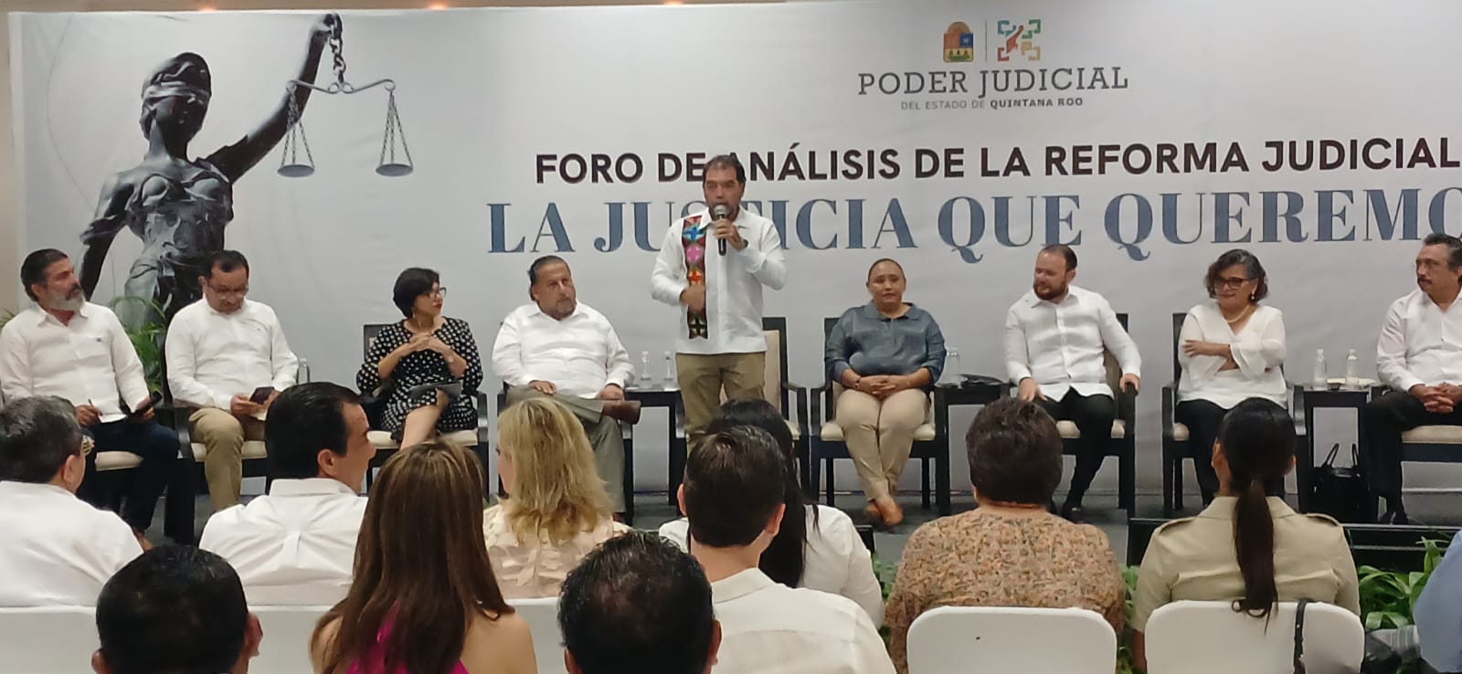 En el evento, abierto al público, se programó la intervención de hasta cinco minutos de cada uno de los ponentes, que abordaron desde la forma en que coadyuvarán las reformas a la impartición de justicia hasta la elección de jueces y ministros de la Suprema Corte de Justicia de la Nación (SCJN).