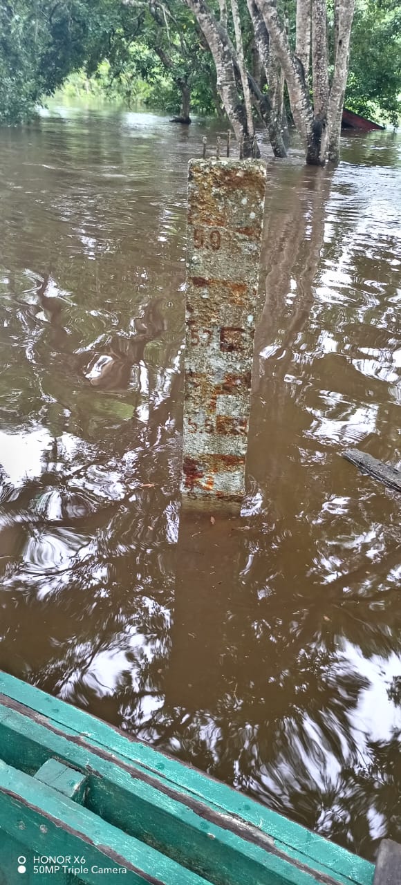 Durante la inspección, se constató que el nivel del río había subido hasta los 5.30 metros, comenzando a inundar y afectar a más de 15 viviendas en la parte baja del poblado.