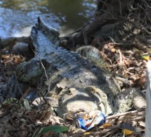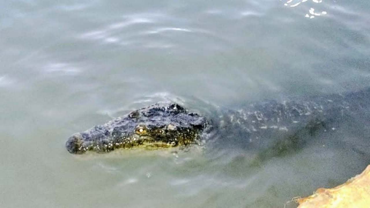 La mañana de este lunes, vecinos y transeúntes reportaron la presencia de un cocodrilo de gran tamaño a escasos dos metros de la banqueta, junto a la palapa de eventos Christy’s, cerca de la Megaescultura. El ejemplar fue visto descansando parcialmente sobre el borde de la banqueta, lo que generó alarma entre las personas que se ejercitaban en el área.