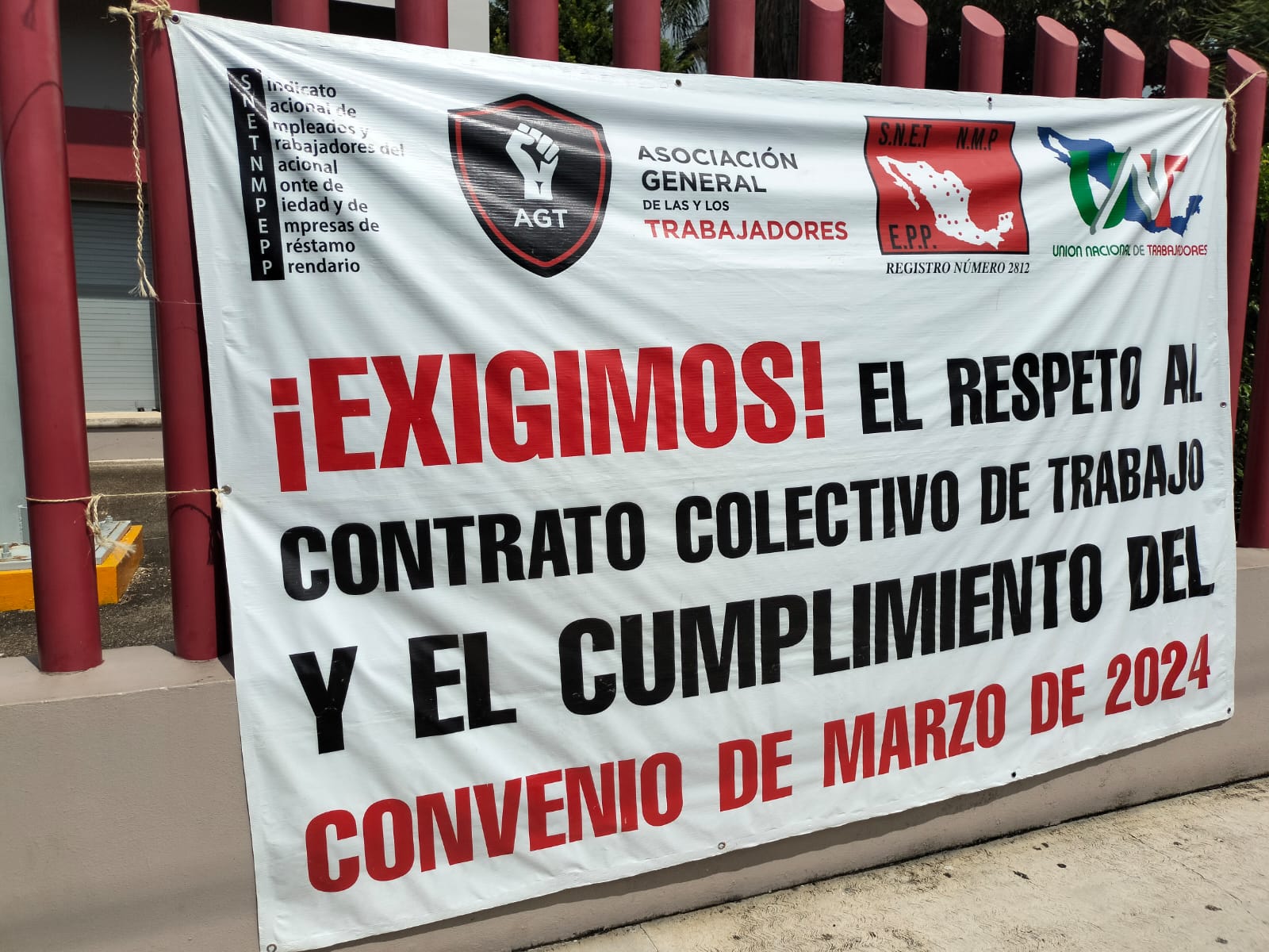 La huelga del Nacional Monte de Piedad ha afectado la operación de cientos de sucursales en todo el país, pero los trabajadores han reiterado que su objetivo no es perjudicar al público, sino defender sus derechos laborales y la vigencia del contrato colectivo, el cual —aseguran— la administración central ha intentado modificar de manera unilateral.