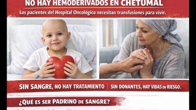 El Banco de Sangre de Chetumal emitió una alerta ante la escasez total de hemoderivados en la capital del estado, una situación crítica que pone en grave riesgo la vida de pacientes con cáncer que reciben atención en el Hospital Oncológico y que dependen de transfusiones sanguíneas para continuar con sus tratamientos y sobrevivir.