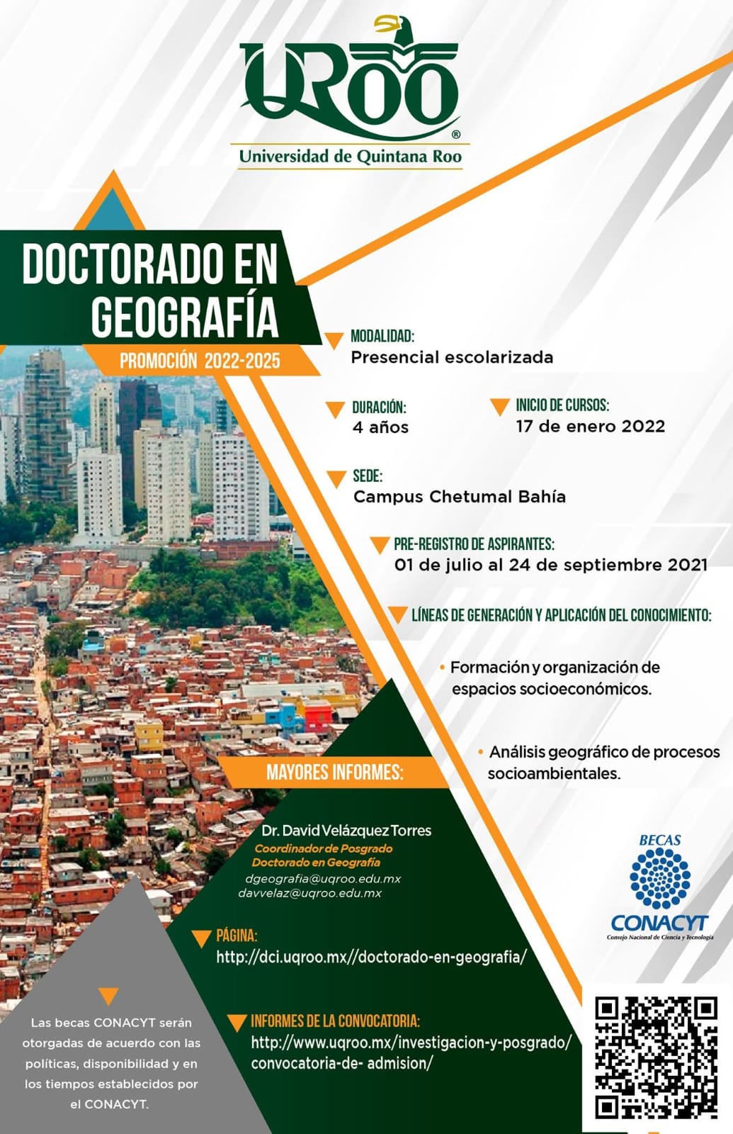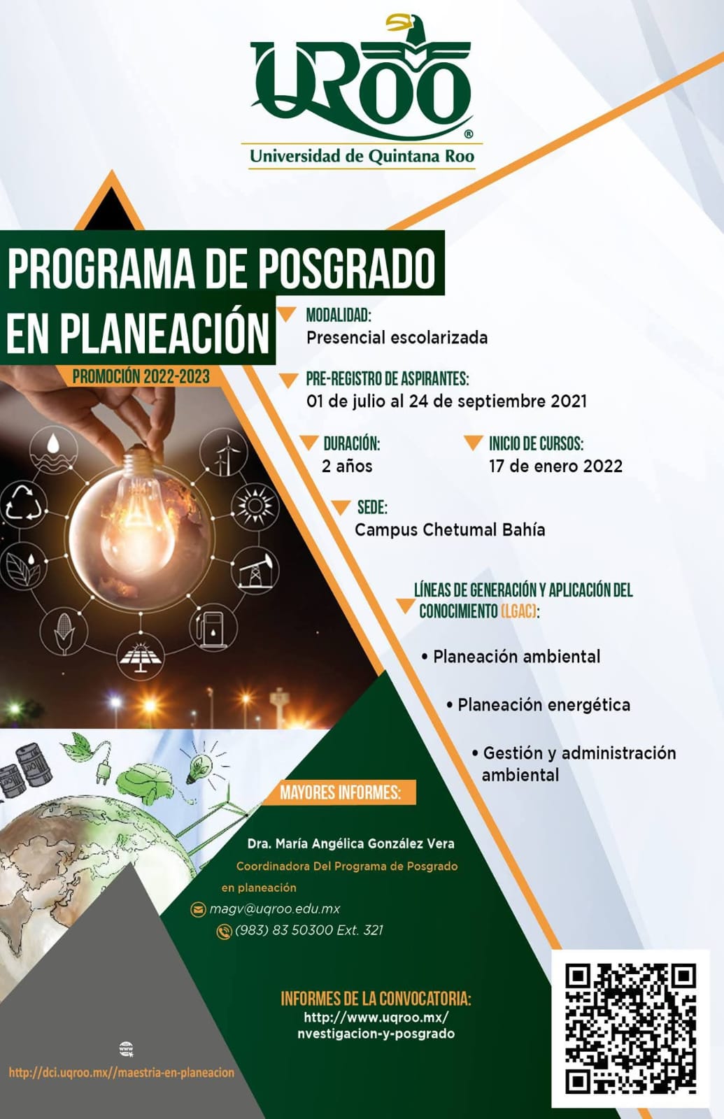 De los 7 posgrados, dos se encuentran en la zona norte y 5 en la zona sur, en la zona norte, en específico en el campus Cozumel, se tienen el Doctorado en Desarrollo Sostenible y la Maestría en Ciencias Marinas y Costeras, ambos programas abren convocatoria de admisión de manera anual manteniendo una matrícula actual de 51 estudiantes; en la zona sur, campus Chetumal Bahía, se tienen 5 posgrados, dos doctorados y tres maestrías, de estos, solo el Doctorado en Geografía tiene admisión anual, el resto es bianual o generacional, manteniendo un equilibrio entre la oferta y demanda de aspirantes, los posgrados son los siguientes: Doctorado en Economía Pública y Desarrollo Local, Doctorado en Geografía, Maestría en Economía del Sector Público, Maestría en Antropología Aplicada y Maestría en Ciencias Sociales Aplicadas a Estudios Regionales, la matricula total en la zona sur es de 43.
