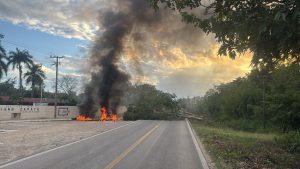 Habitantes de la comunidad de Chunhuhub bloquearon por varias horas la carretera federal conocida como la vía corta a Mérida, en protesta por presuntos operativos realizados por agentes ministeriales de Quintana Roo y Yucatán.