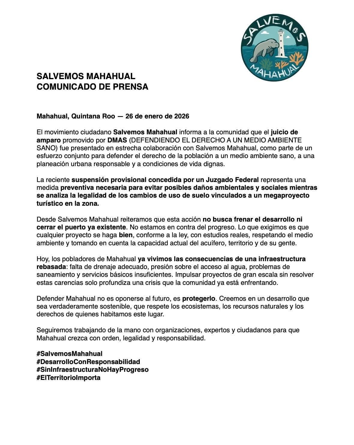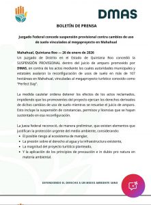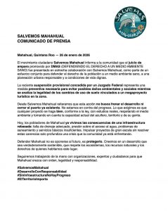 Además, el juzgado subrayó que Mahahual enfrenta carencias en infraestructura de saneamiento, lo que podría agravar los efectos de un desarrollo de gran escala.