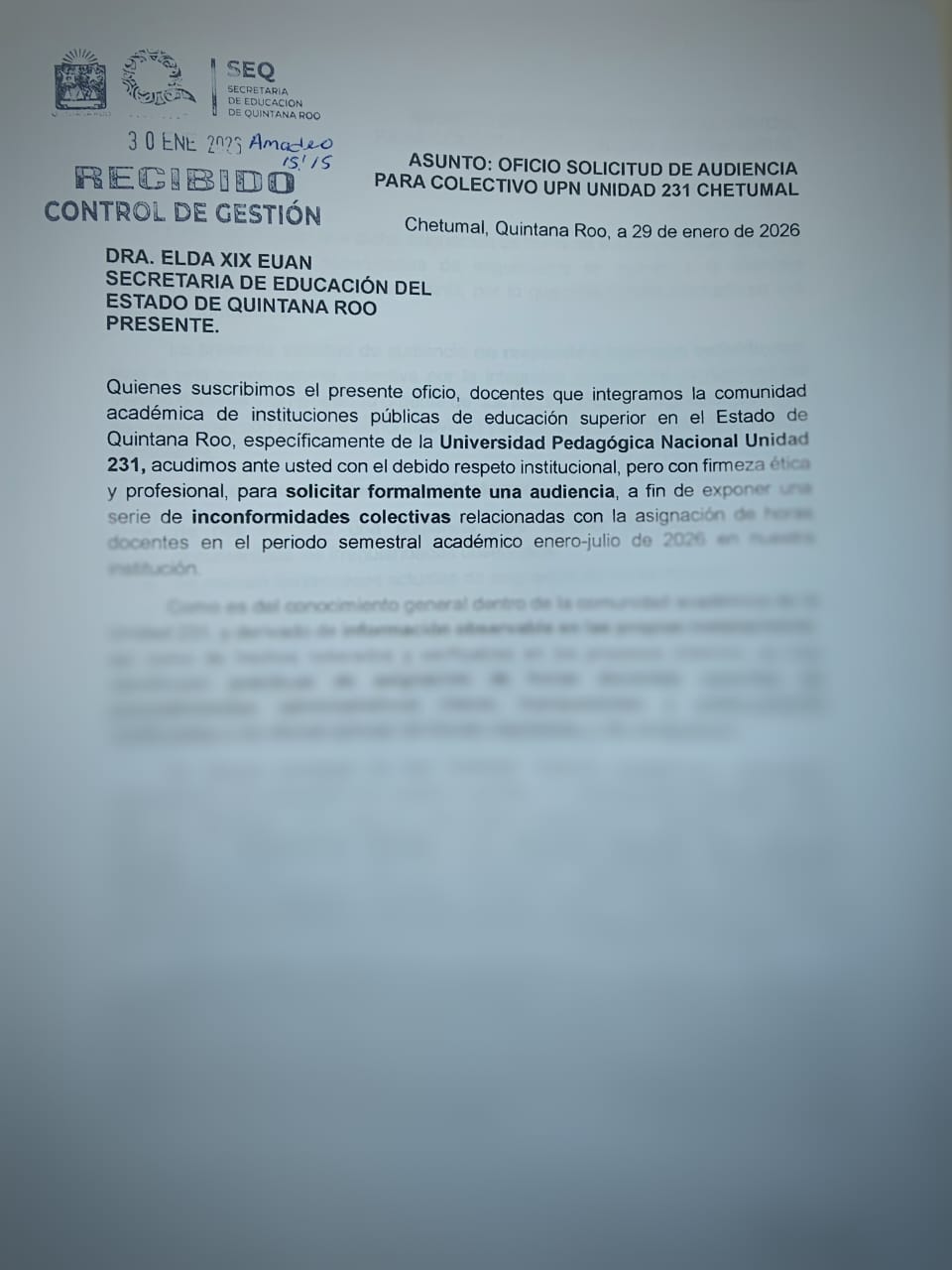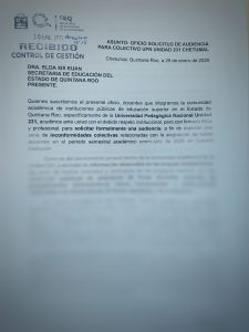 El pasado 30 de enero solicitaron audiencia con la secretaria de Educación de Quintana Roo, Elda Xix Euan, para revisar las decisiones administrativas.