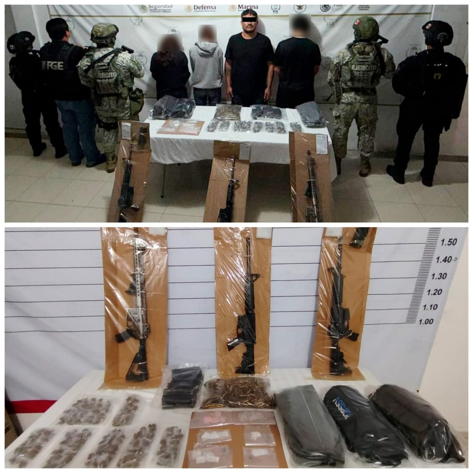 En la acción participaron elementos de la Policía de Investigación, Secretaría de la Defensa Nacional, Secretaría de Marina, Secretaría de Seguridad Ciudadana y la Policía Municipal. A los detenidos se les aseguraron tres armas largas tipo R15 calibre 5.56 mm, consideradas de uso exclusivo de las Fuerzas Armadas.
