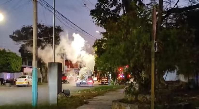 Una pipa de gas LP perteneciente a la empresa Z Gas presentó una fuga activa mientras circulaba por calles de la colonia Adolfo López Mateos en la ciudad de Chetumal.