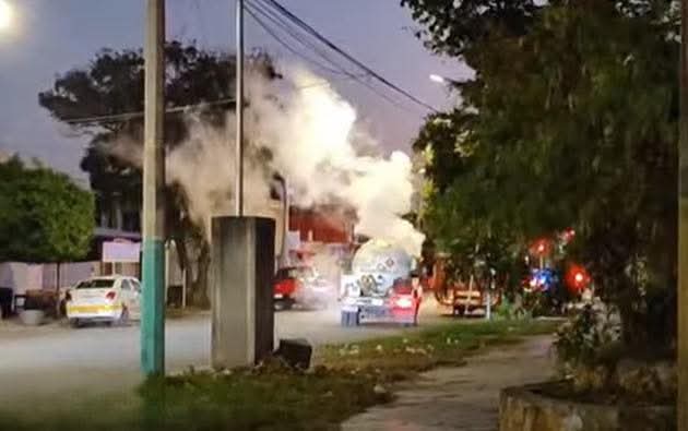 La situación fue detectada inicialmente por una unidad del Departamento de Tránsito de la Secretaría de Seguridad Ciudadana de Quintana Roo, cuyos elementos se percataron de la anomalía mientras realizaban un recorrido de vigilancia. De inmediato, los oficiales activaron los protocolos preventivos y alertaron a los operadores de la pipa mediante altoparlantes para que detuvieran su marcha.